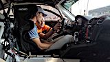 Teammate Kim Berwanger kindly introduces the Porsche Cayman GT4 CS to me