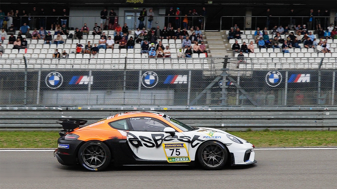 Zum allerersten Mal in einem GT4 begab ich mich gleich ins Renngeschehen und fuhr mein erstes NLS-Rennen in einem Porsche Cayman GT4, wie er in der NLS Cup 3-Klasse der Porsche Endurance Trophy, in der GT4 Germany und im Porsche Sports Cup eingesetzt wird.