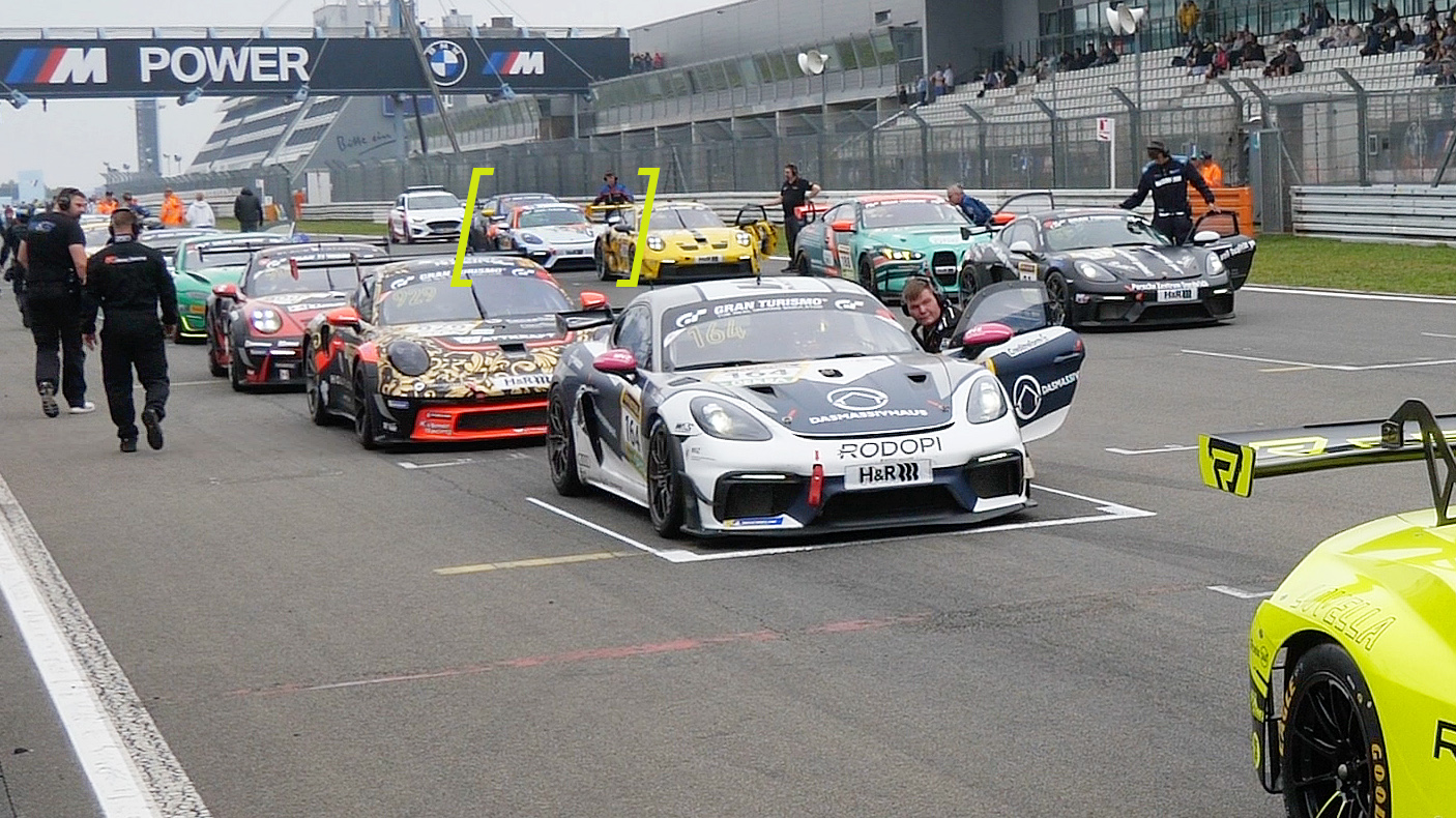 Meine vierte Runde beginnt – das zweite Starterfeld (dort auch mit regulären Porsche GT4 CS) hat mich noch nicht eingeholt